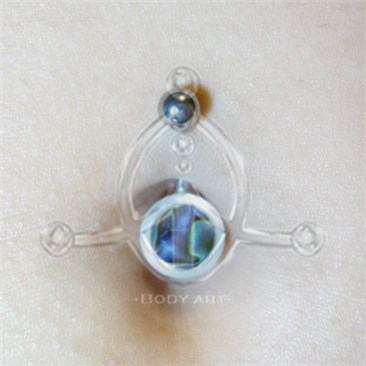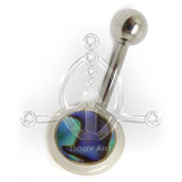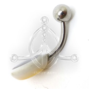 Banana de ombligo étnica con barra de acero y figura nacarada, modelo LUNA; grosor, 1.6x10 mm