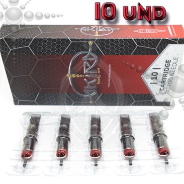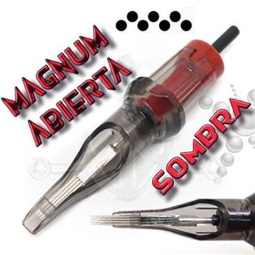 Agujas de cartucho MAGNUM- Tip Abierto de alta calidad, marca AKIRA, con membrana de seguridad. CAJA DE 10 UNIDADES. Long Taper. Ideal para Sombras. Agujas esterilizadas de acero quirúrgico 316L y plástico de grado médico.