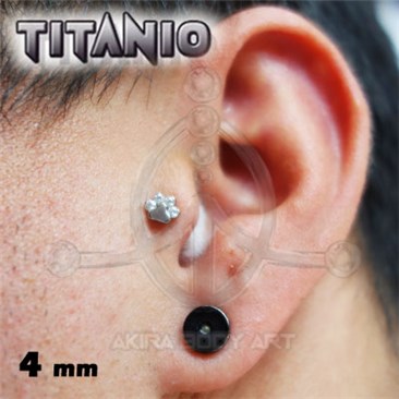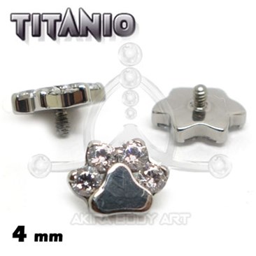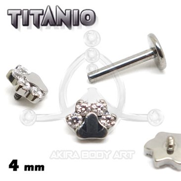 Repuesto con forma de huella en titanio rosca interna. 4 joyas color cristal. Medidas huella: 4 mm. Rosca: 0,9 mm