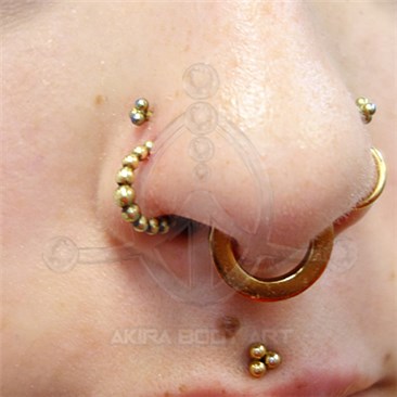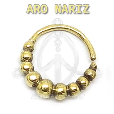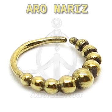 Aro flexible para nariz, fabricado en latón. Adorno: bolas. Medidas: 0,8 x 7 mm.