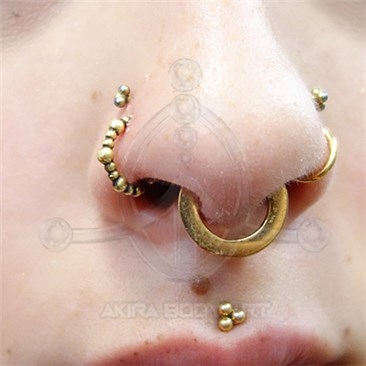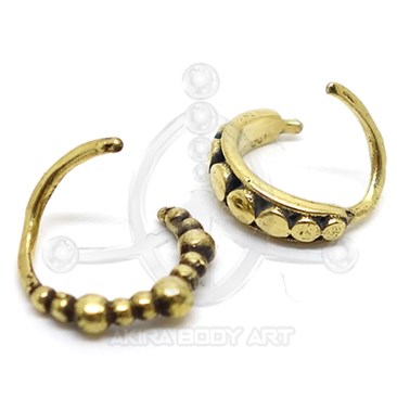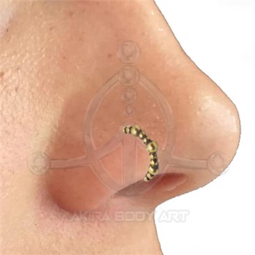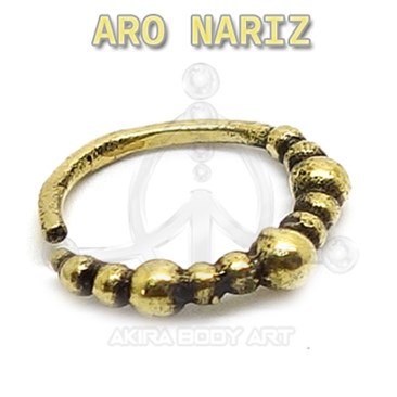 Aro flexible para nariz, fabricado en latón. Adorno: bolas. Medidas: 0,8 x 7 mm.