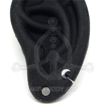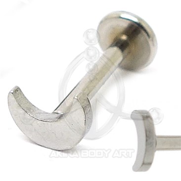 Labret fabricado en acero quirúrgico. Forma de Luna. Medida barra: 1,2 x 8 mm. Medida motivo: 3,5 x 5 mm. Medida base: 4 mm. Rosca: 0,8 mm.