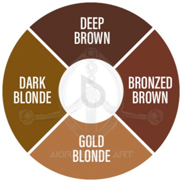 - RUBIA: Rubio medio cálido. Para técnicas de Pelo a Pelo se debe usar con matices del tono Morena, en Shading se puede utilizar puro. Usar en rubios claros y subtonos cenizos.