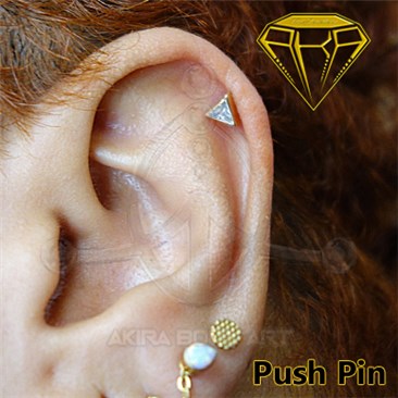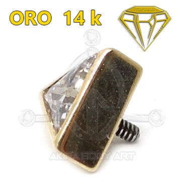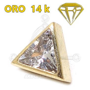 Repuesto para barras fabricado en Oro 14K. Forma de triángulo con circonita medida 4,5 mm. Rosca de 0,9 mm.