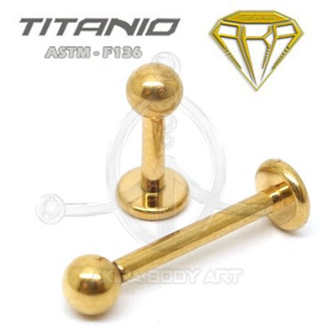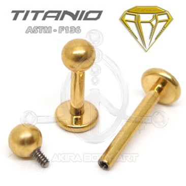 Labret fabicado en titanio color oro (PVD). Rosca interna.