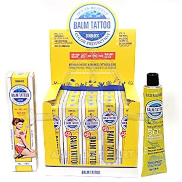 El protector solar de algas doradas protege y cuida tus tatuajes con una protección de amplio espectro. SPF 50+, UVB, UVA, LUZ AZUL. Fórmula enriquecida con D-PANTENOL, aceite de TUCUMA y extracto de Laminaria Ochroleuca (ALGA DORADA).