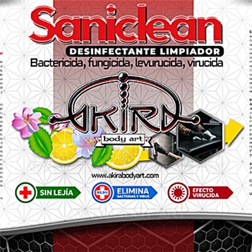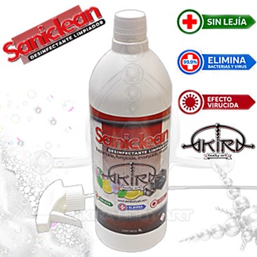 Saniclean es un desinfectante y limpiador multiusos que elimina bacterias, virus, grasa y suciedad de superficies y utensilios. Formato de un litro, ideal para cabinas y espacios de trabajo.